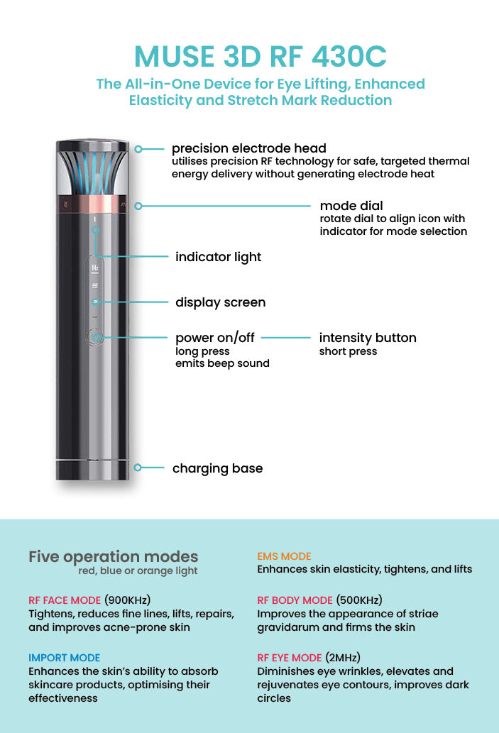 Designed specifically for the delicate eye area, the RF Eye Mode employs a 2Mhz radiofrequency. This gentle yet effective treatment tightens sagging skin, minimizes fine lines, and reduces puffiness.