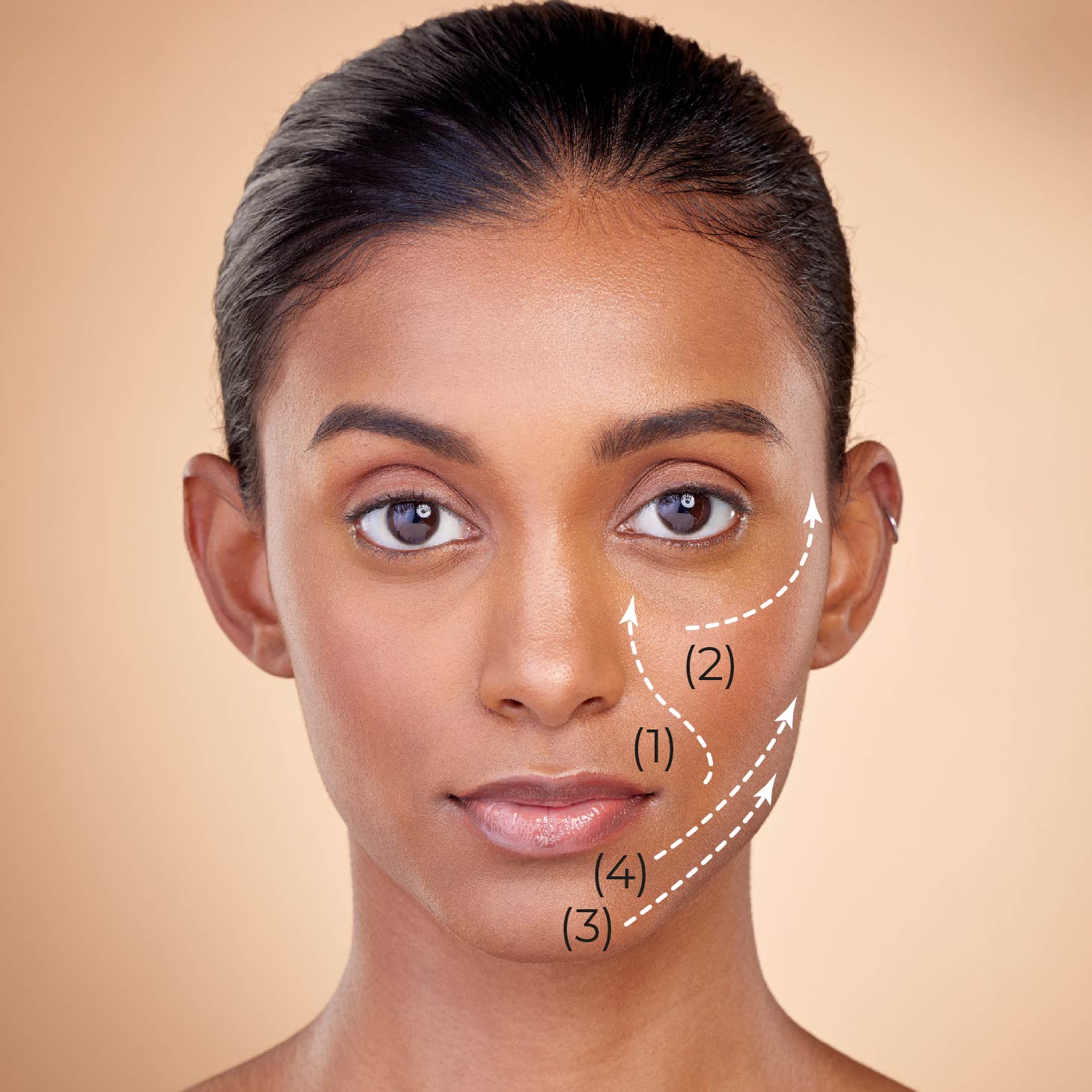 Alternative Forehead Treatment: Move from the brow upwards in straight slow movements.